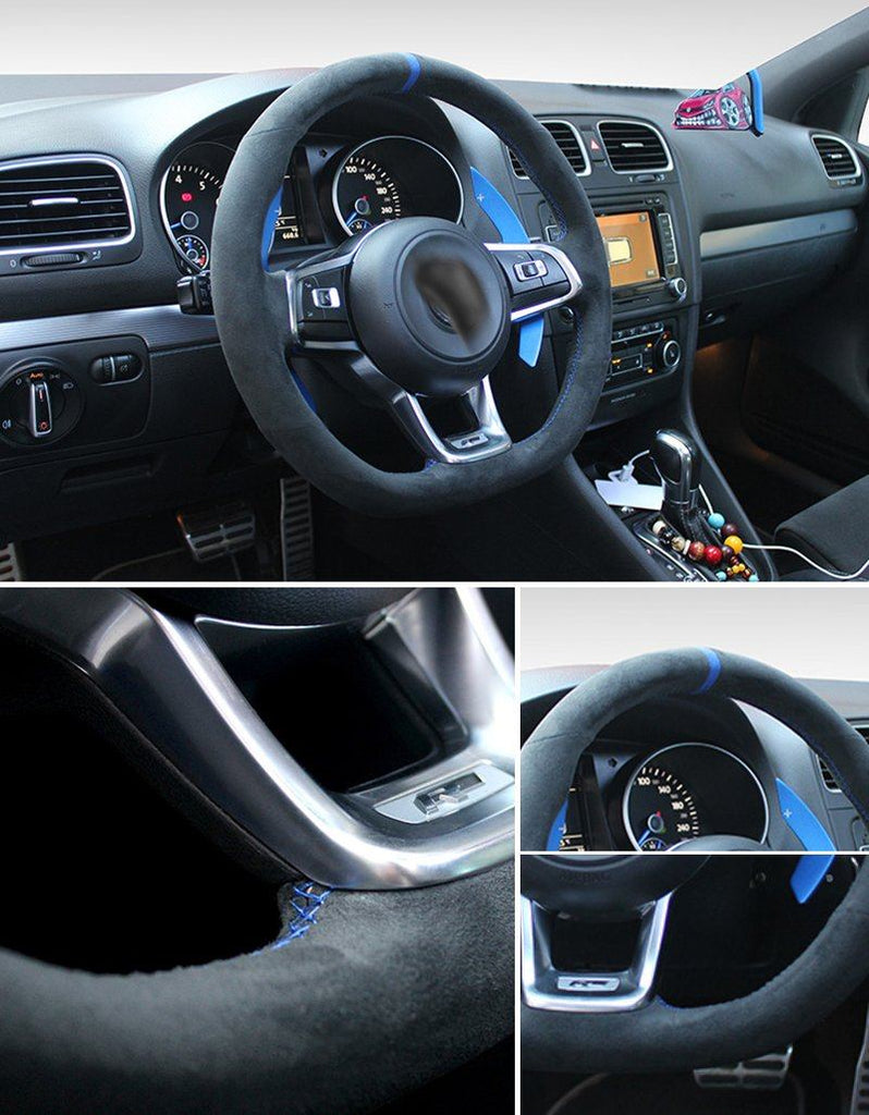 38cm steering wheel Synthetic Cashmere Steering Wheel Cover for VW Golf7 MK7 GTI POLO (Blue Rope Blue Mark)