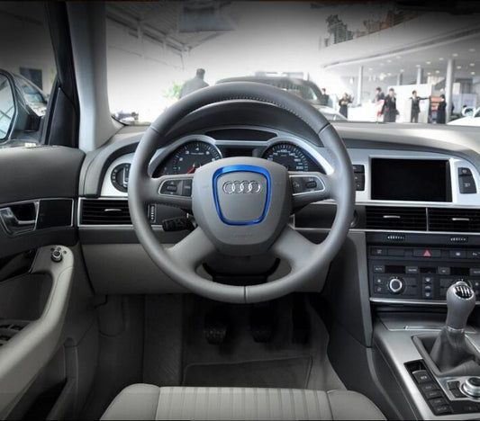 Aluminum Interior Metal Steering Wheel Ring Emblem Frame For Audi TT A3 A4L A5 Q7 A6L Q3 Q5 A8L (Blue)