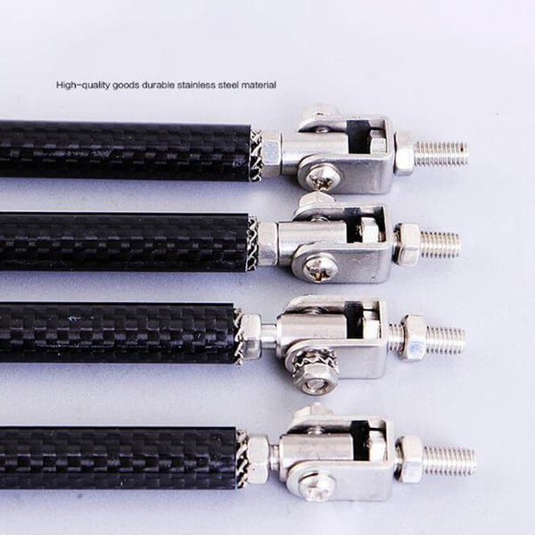 This support rod is made of carbon fiber and stainless steel for strength and durability. Designed with articulated top and bottom joints, it can be installed at any angle.