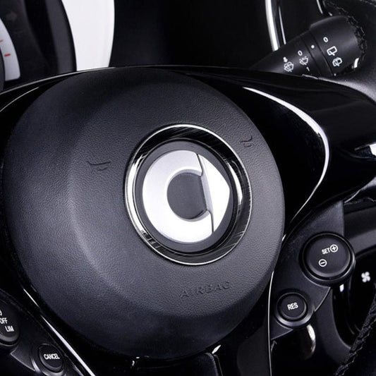 Steering Wheel Center Emblem Frame Sticker Cover Ring For Smart 453 Fortwo Forfour (Silver)