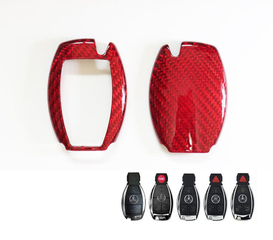 Pinalloy Deluxe Real Red Carbon Fiber Remote Key Cover Case Shell for Mercedes Benz