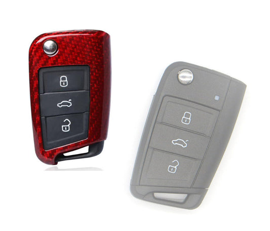 Pinalloy Deluxe Red Real Carbon Fiber Key Cover Case Shell Fob for Volkswagen VW Golf 7 MK7