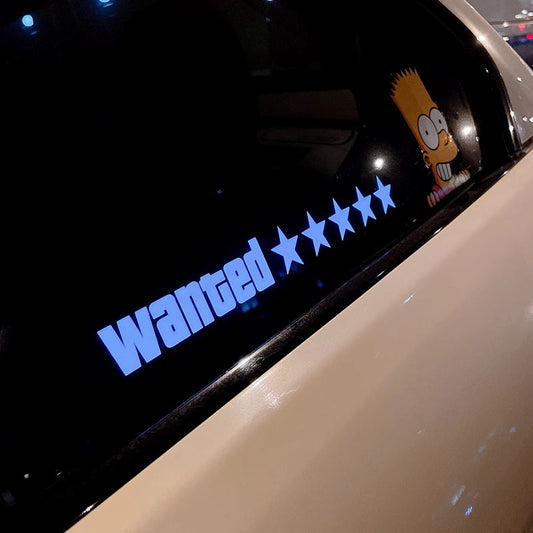 Five-Star Wanted GTA Style Light Luminous Patch Car Sticker for Windshield Side Window Decoration
