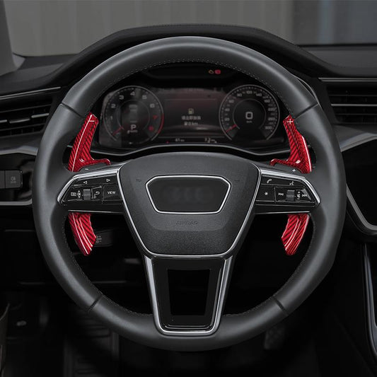 Pinalloy Replacement Version Red Carbon Fiber Paddle Shift Extenders for Audi A3, A4, A5, S3, S4, S5, A6, R8, RS4, RS5, RS7 (2016+)