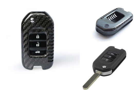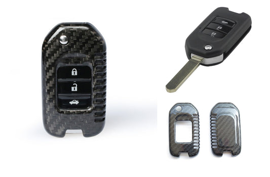 Pinalloy Carbon Fiber Remote Flip Key Cover Case fit Honda Civic HRV Accord
