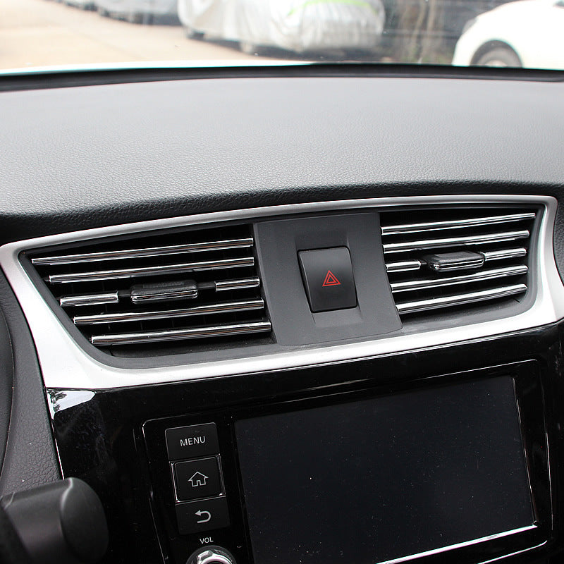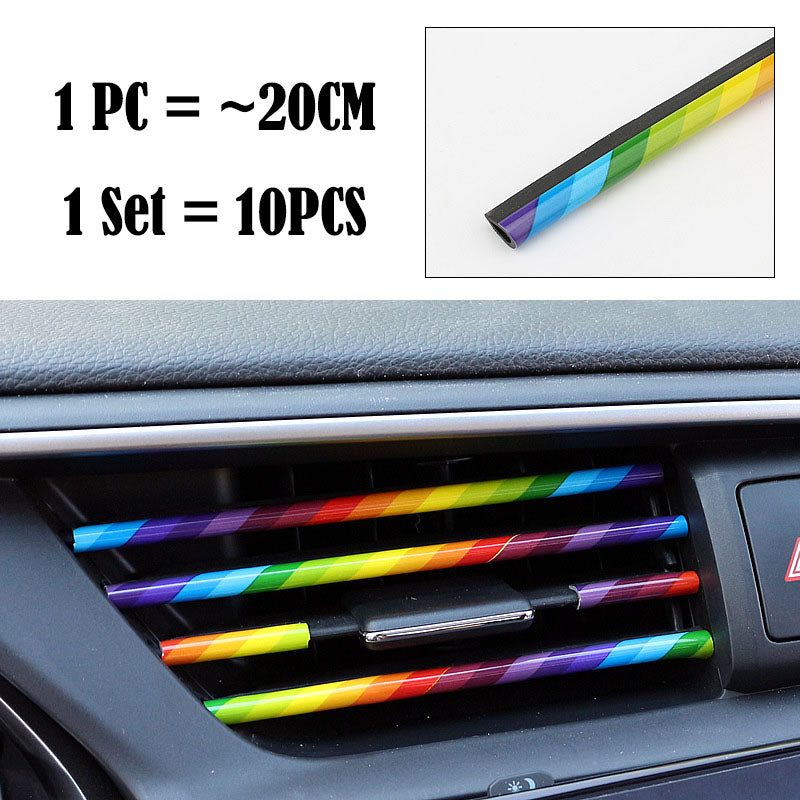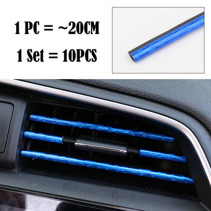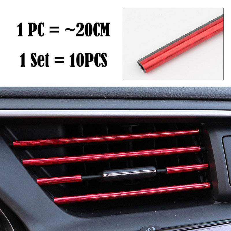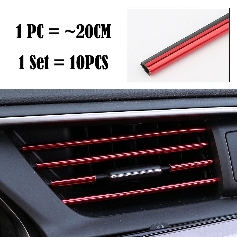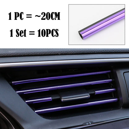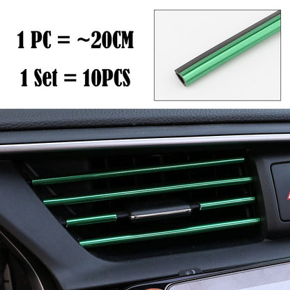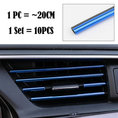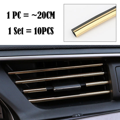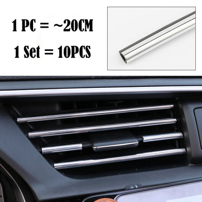 (Set of 10pcs) Pinalloy 20cm 3D Bright Strip Chrome Car interior DIY Exterior Moulding Trim Strip line Sticker for Air Outlet