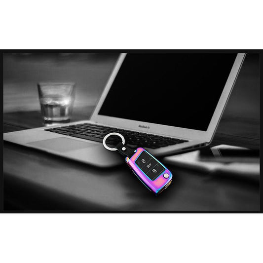 Pinalloy Deluxe Chrome Rainbow Key Cover Case Shell Fob for Volkswagen VW Golf 7 MK7