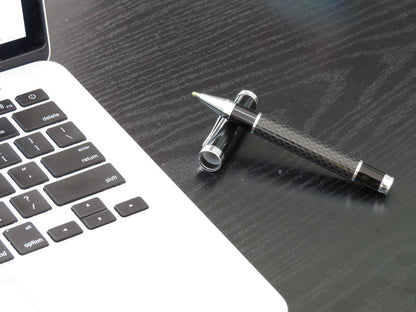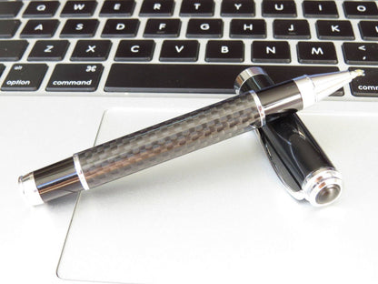 Deluxe Real Genuine Carbon Fiber Steel Black Ink Ball Pen