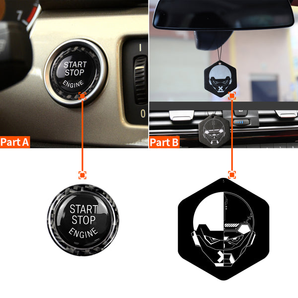 - This carbon fiber sticker is a simple and easy-to-use car interior modification accessory, which can be applied to the one-key start button of BMW E90/E92/3 series models, making your car interior look more stylish and personalized. In addition, the carbon fiber material of the sticker also features scratch resistance, wear resistance, and easy cleaning, providing better protection for your car.