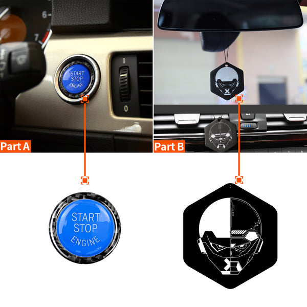 - This carbon fiber sticker is a simple and easy-to-use car interior modification accessory, which can be applied to the one-key start button of BMW E90/E92/3 series models, making your car interior look more stylish and personalized. In addition, the carbon fiber material of the sticker also features scratch resistance, wear resistance, and easy cleaning, providing better protection for your car.