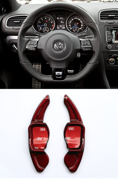 Pinalloy Real Carbon Fiber Red DSG Paddle Shifter Extension Steering Wheel for VW Golf Scirocco MK5 6 / SEAT Leon