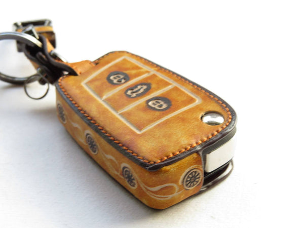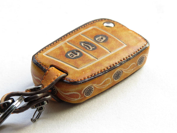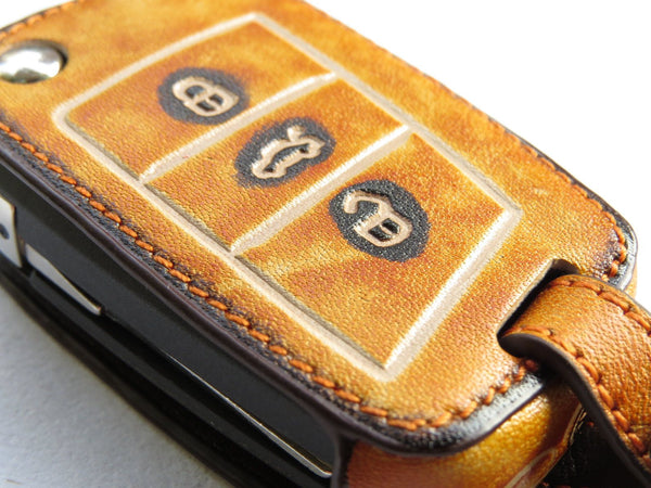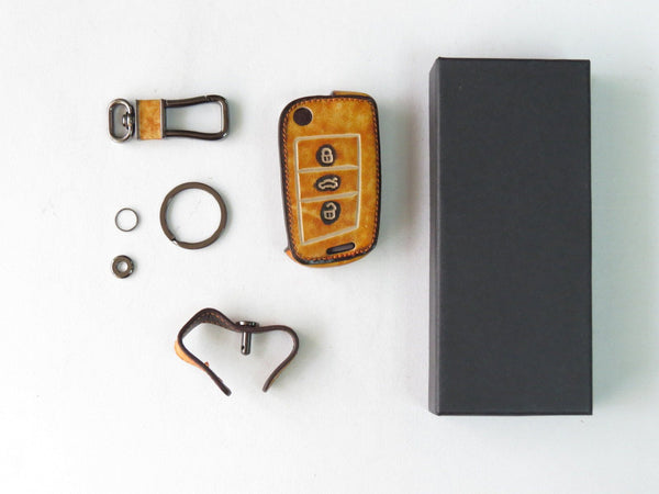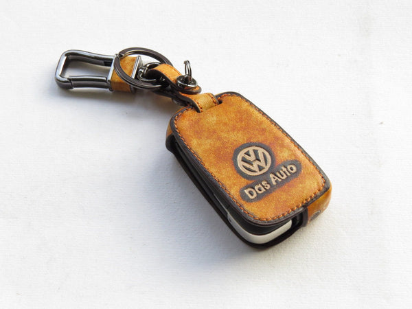 Pinalloy Retro Brown Genuine Leather Folding Key Holder Case Cover For VW Golf 7 MK7 VII