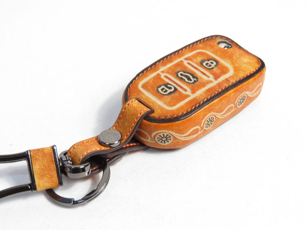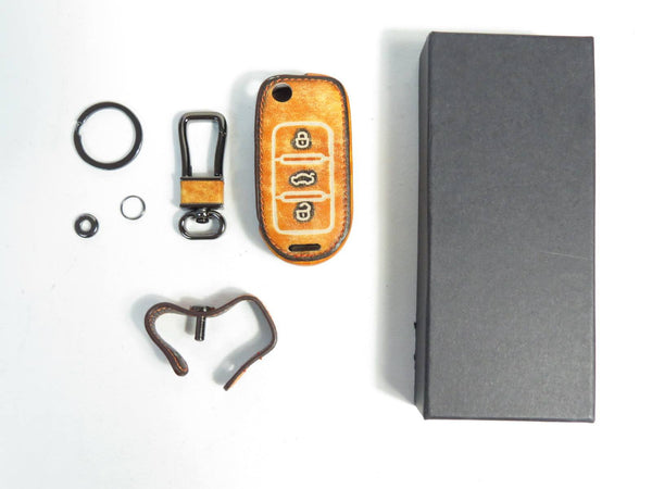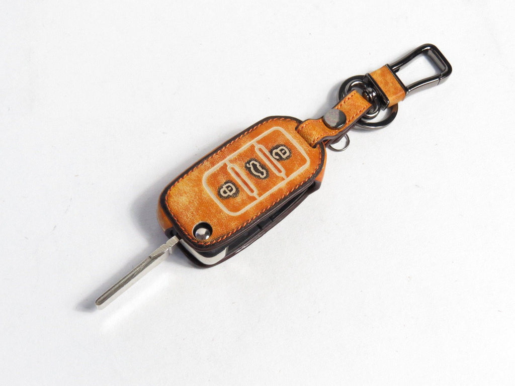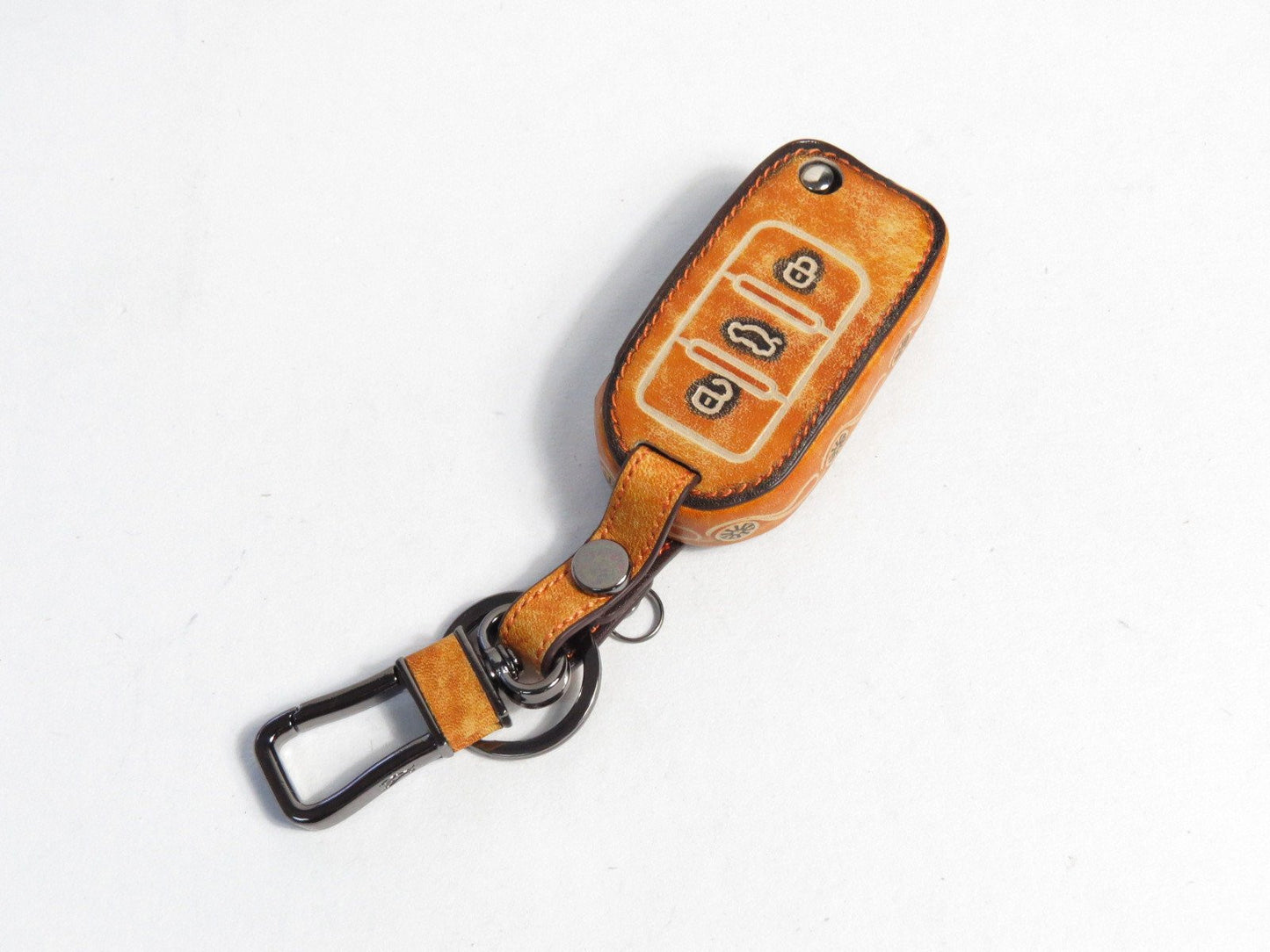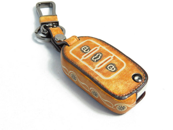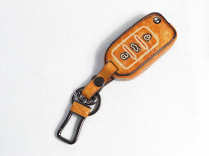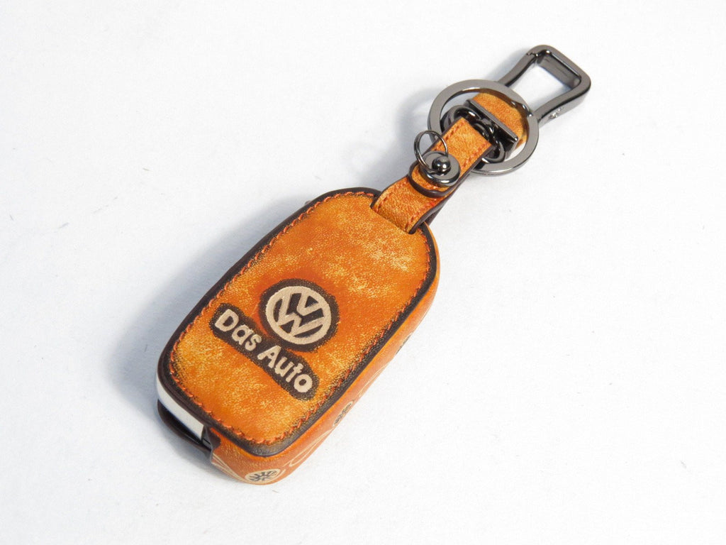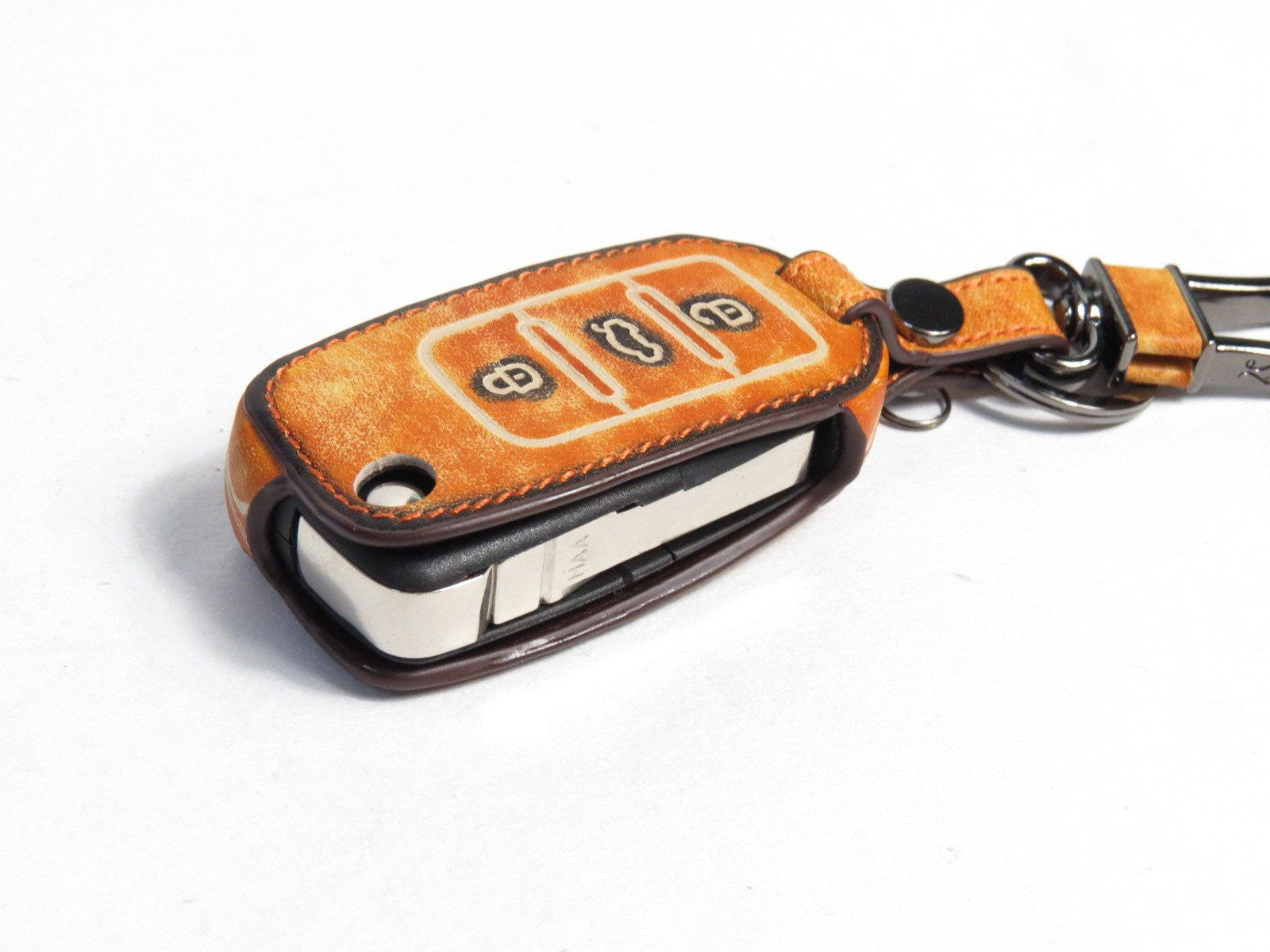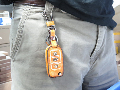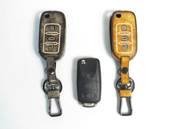 Pinalloy Retro Brown Genuine Leather Folding Key Holder Case Cover For VW Golf Passat MK6