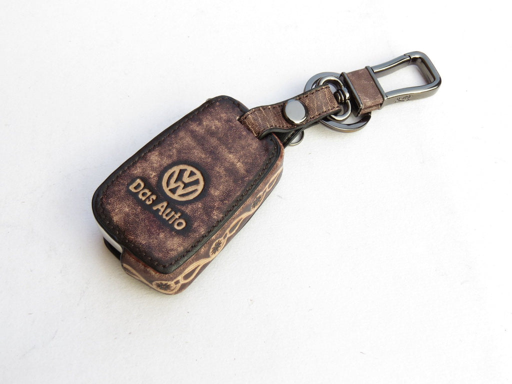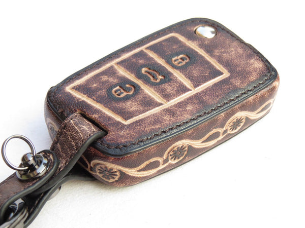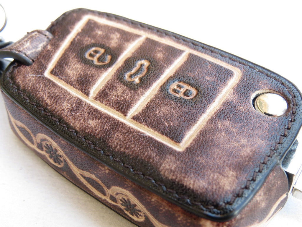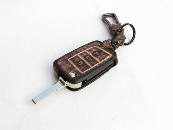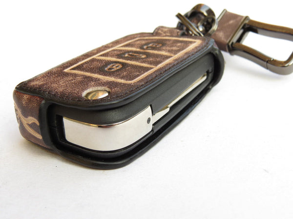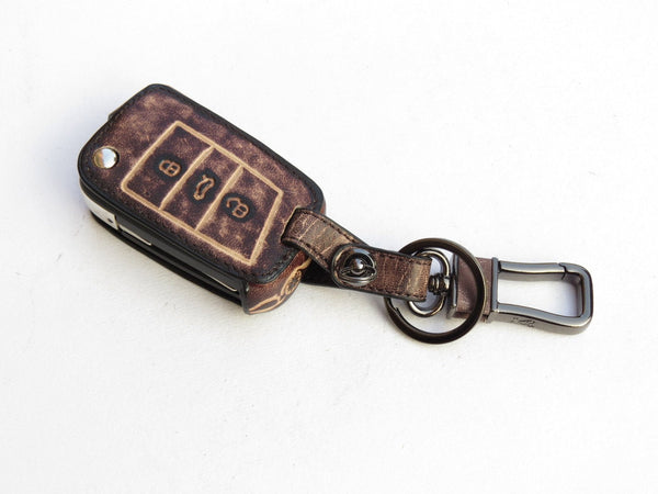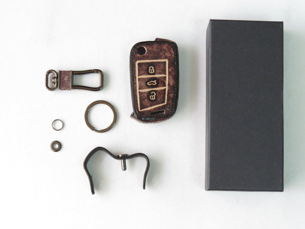 Pinalloy Retro Dark Genuine Leather Folding Key Holder Case Cover VW Golf 7 MK7 GTI VII