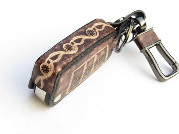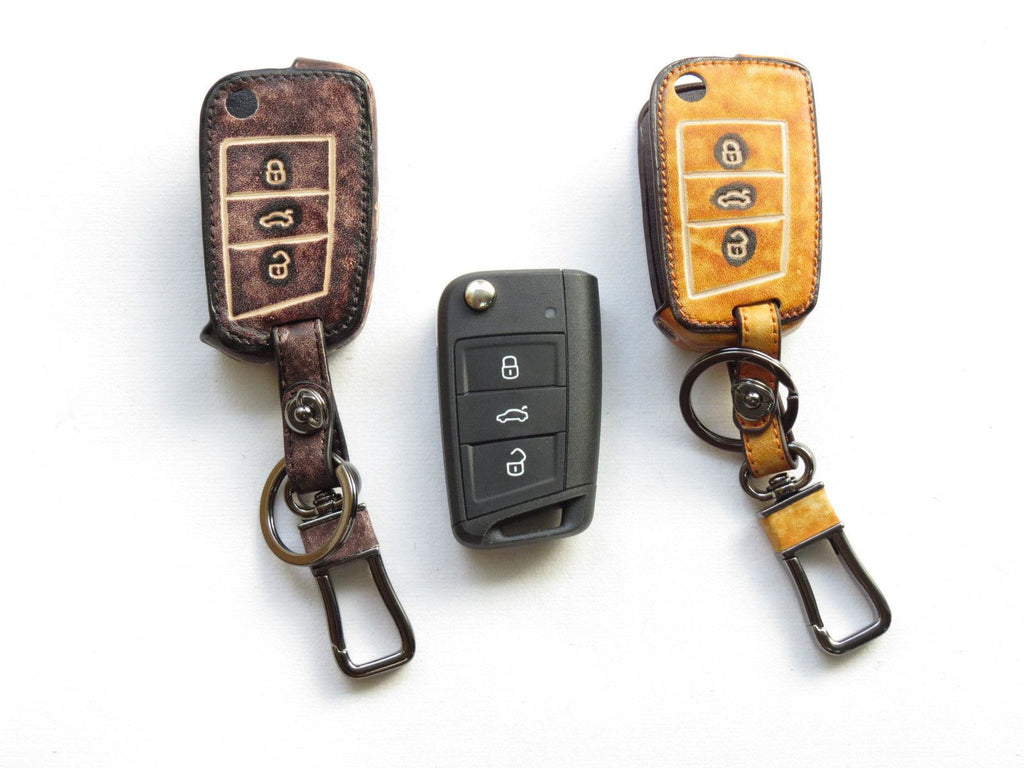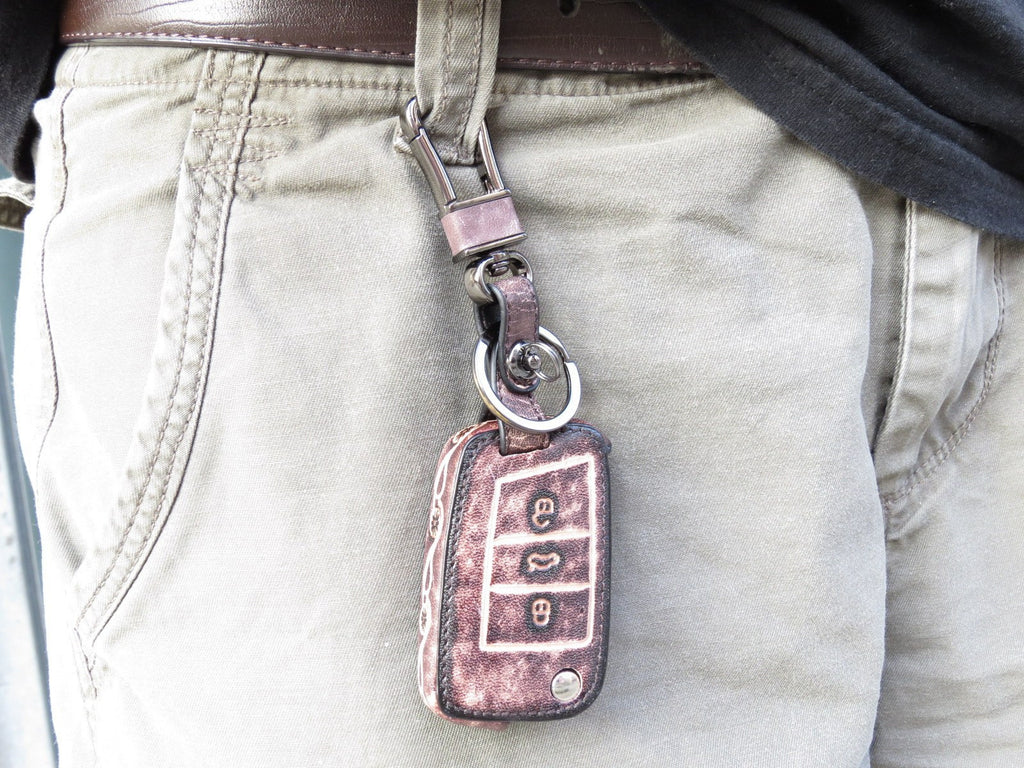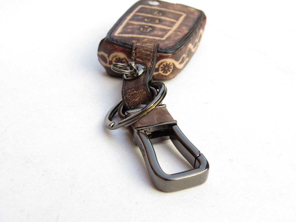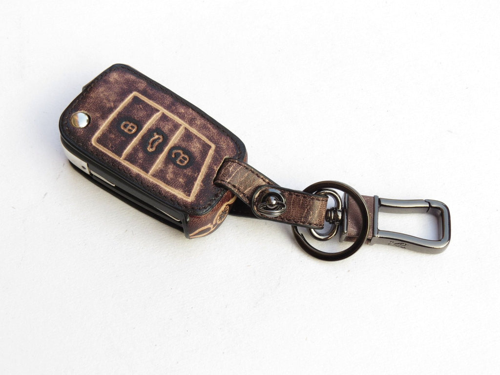 Pinalloy Retro Dark Genuine Leather Folding Key Holder Case Cover VW Golf 7 MK7 GTI VII