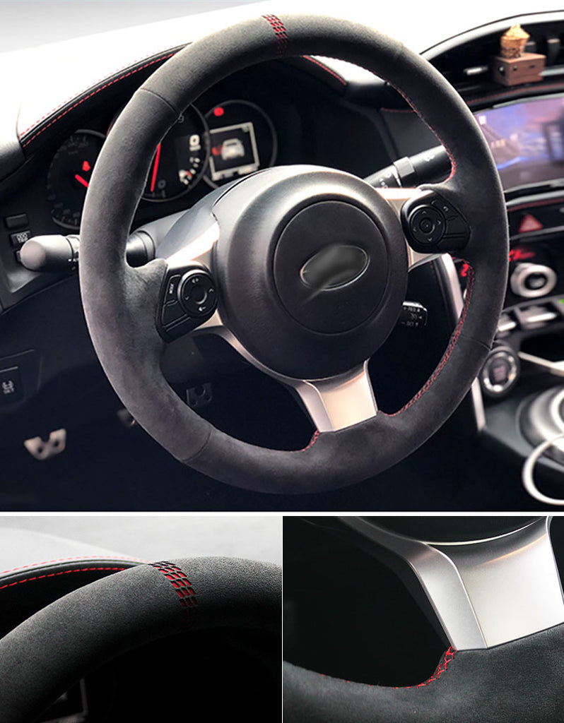 38cm steering wheel Synthetic Cashmere Steering Wheel Cover for Subaru 2017+ (Red line + Red grid mark)