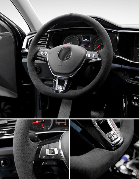 38cm steering wheel Synthetic Cashmere Steering Wheel Cover for VW Golf7 MK7 GTI POLO (Black Rope Black Square Mark)