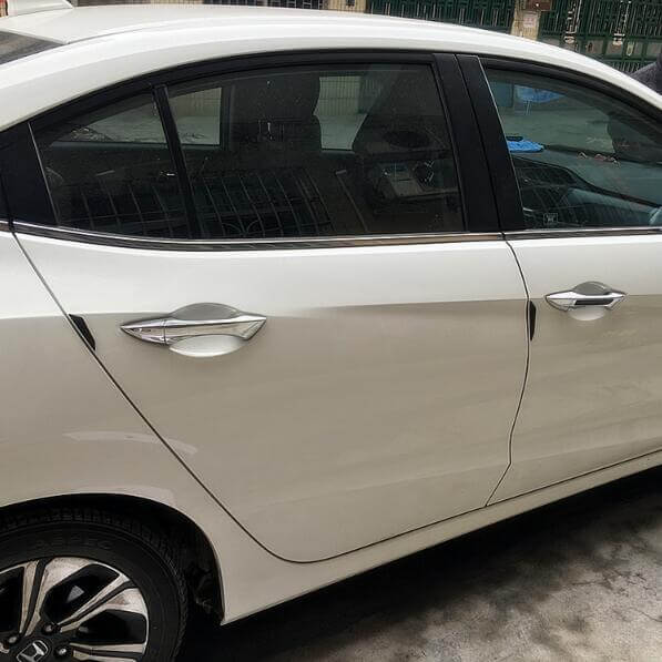 • It is made of real carbon fiber for protecting the door from bump damages when stopping or parking.