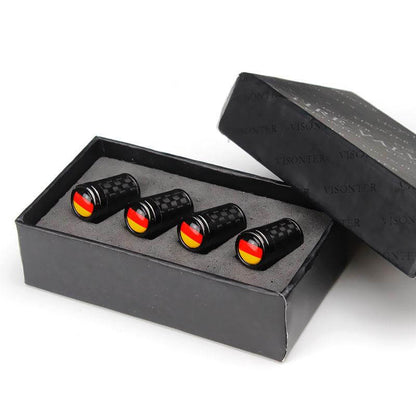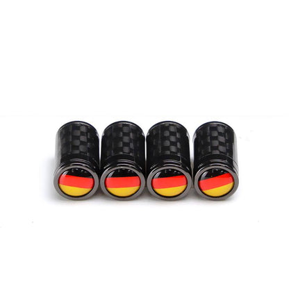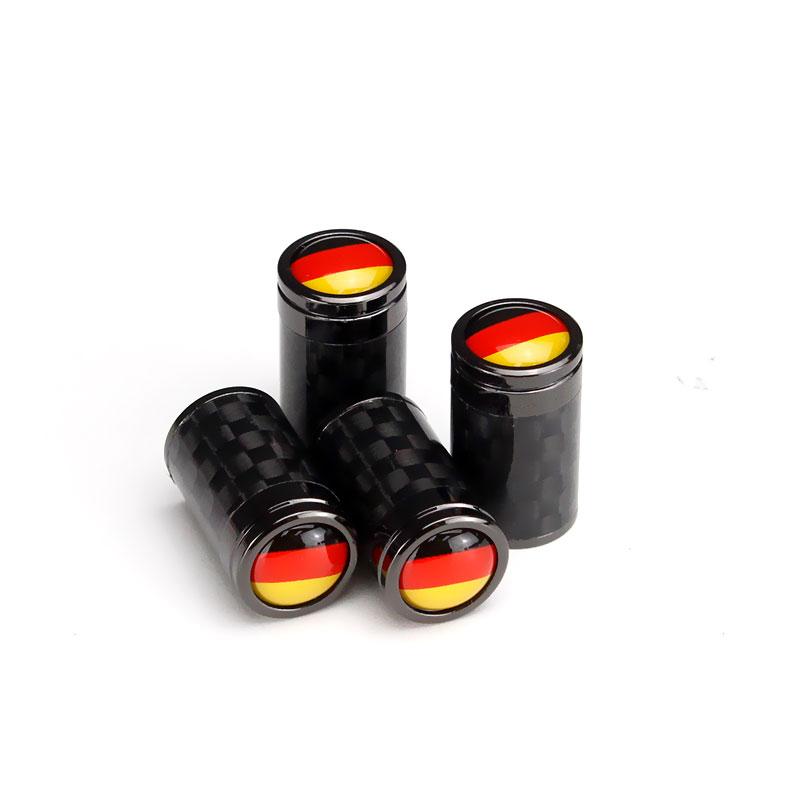 (Set of 4pcs) Carbon Fiber (With Germany Flag) CAR Airtight Wheel Tire Air Valve Caps Stem Cover