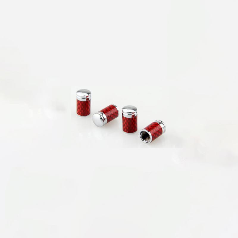 (Set of 4pcs) Red Carbon Fiber CAR Airtight Wheel Tire Air Valve Caps Stem Cover